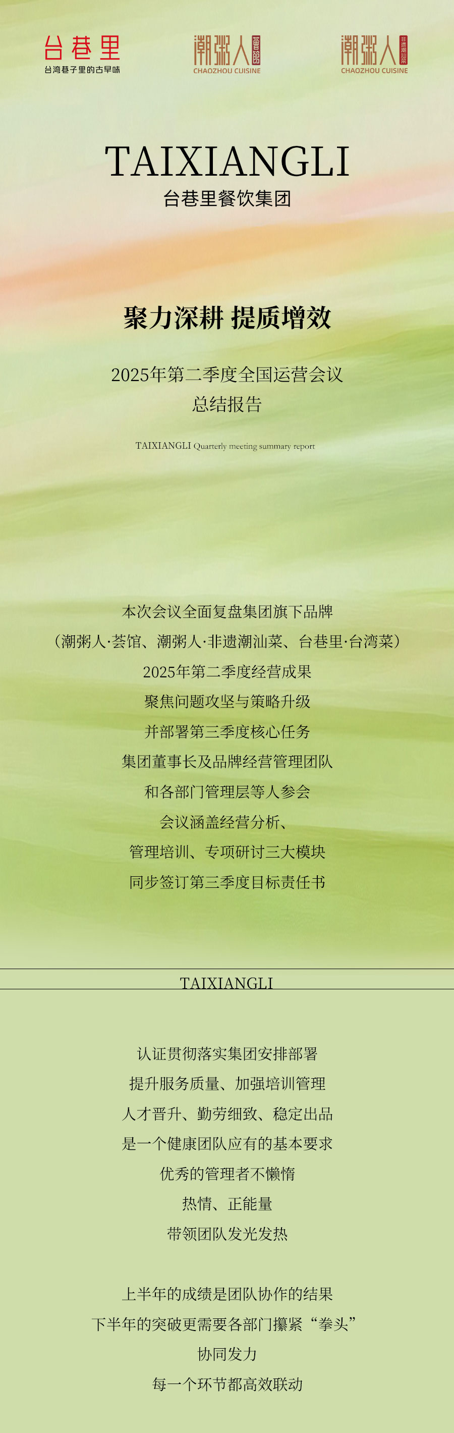 台巷里&潮粥人丨台巷里餐饮集团2025年第二季度